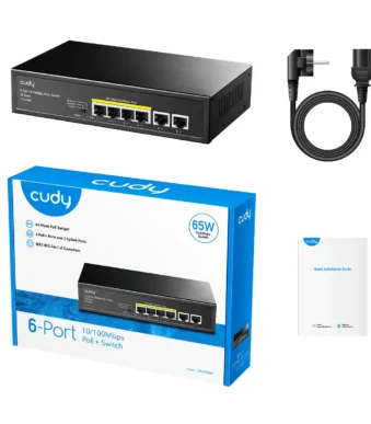 Il prezzo originale era: 79,99€.69,99€Il prezzo attuale è: 69,99€.Switch POE 6P 4 Port PoE + 2 10/100M Ethernet Uplink Cudy FS1006P